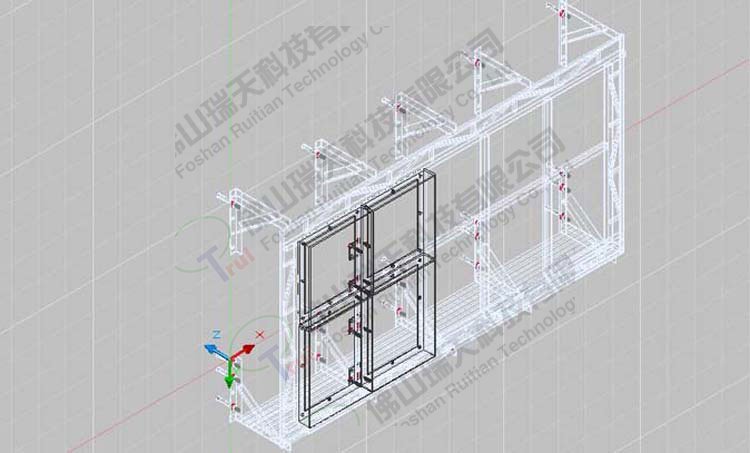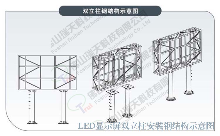 7.安裝鋼結構框架:P10戶外LED全彩顯示屏為輕質鋼架,在相應的梁柱部分采用化學鉚栓鉚固鋼板作為承托結構,顯示屏鋼制框架與鉚固定鋼板連接