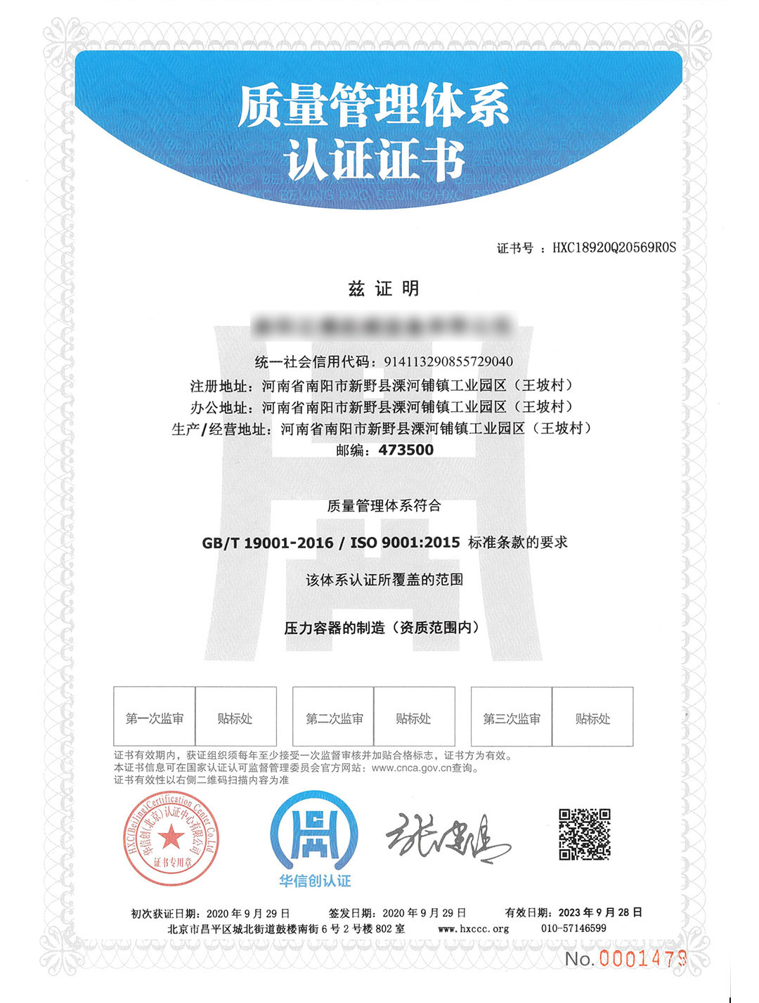 質(zhì)量管理體系認(rèn)證證書